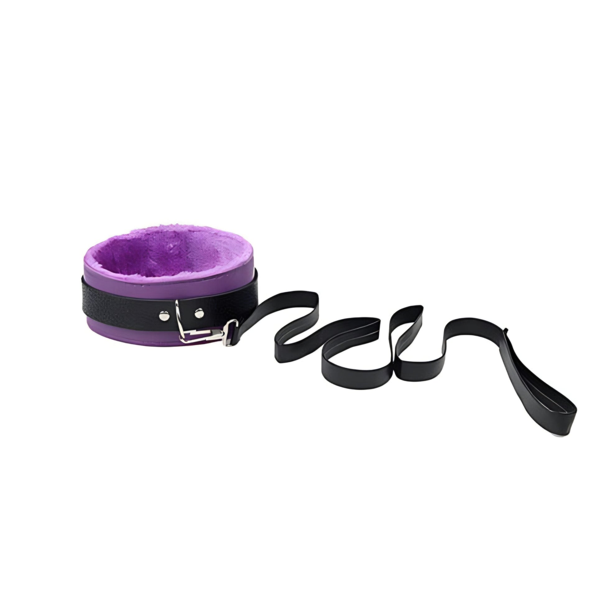 Coleira com Guia Couro Pelúcia
