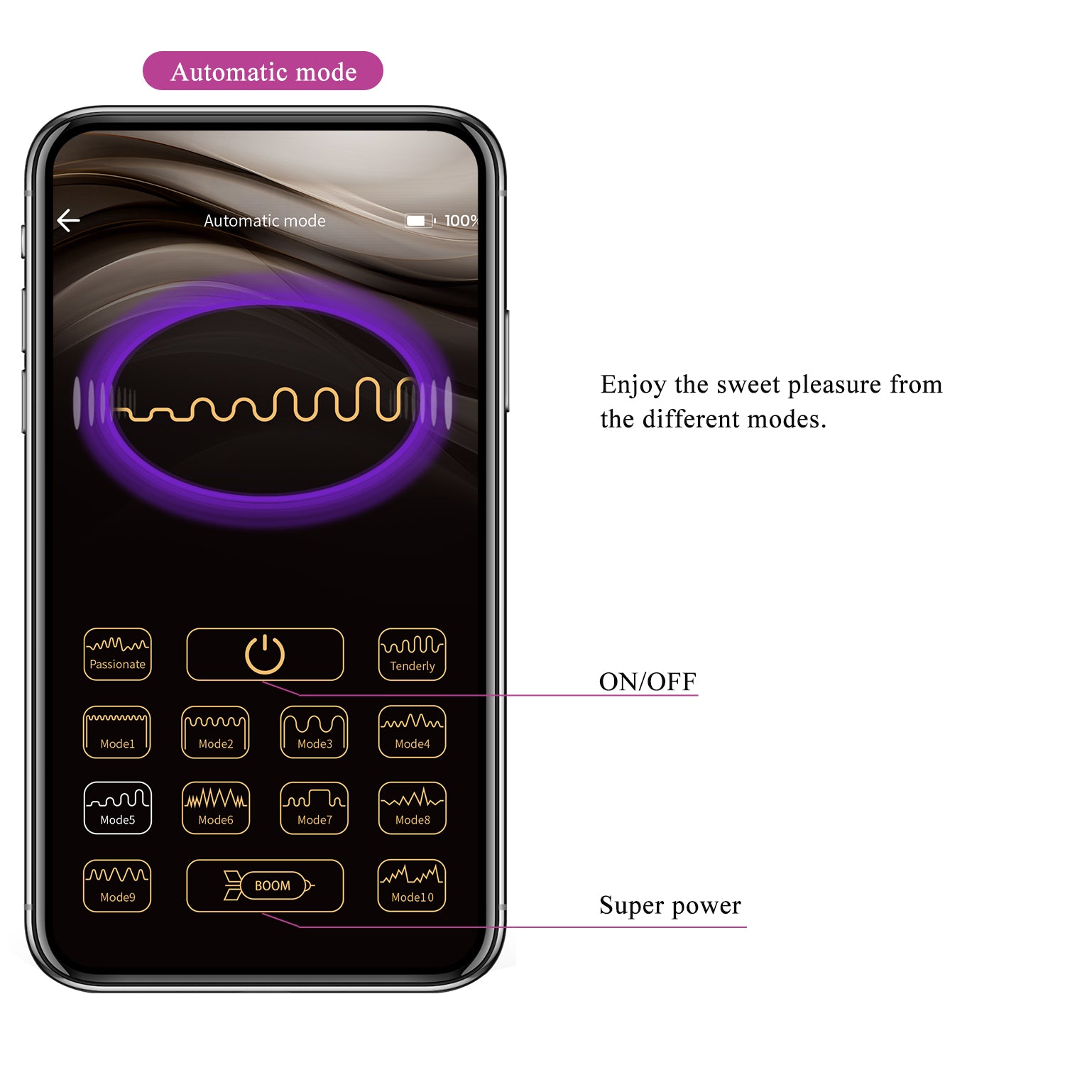 Bullet recarregável vai e vem com controle via aplicativo à distância. Possui 10 modos de vibração e 10 modos de movimentos.